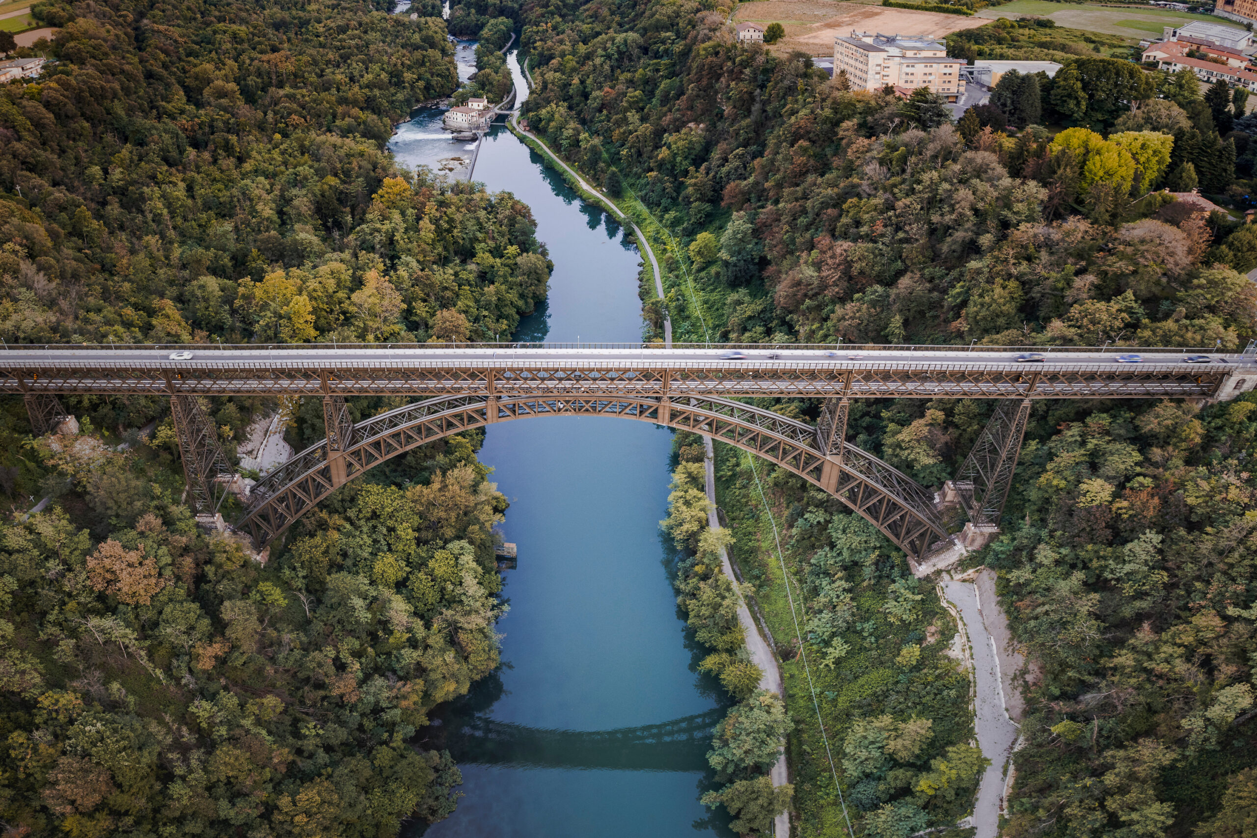 Slanciato come un disegno di ferro nel cielo, il Ponte San Michele unisce le sponde dell’Adda da oltre un secolo, prodigio ottocentesco in cui ingegno e bellezza si fondono in un’unica, ardita campata sospesa sul vuoto.