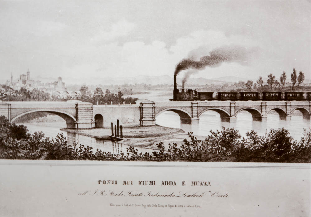 Il secolo XIX ramifica tranvie e ferrovie, favorendo sull’Adda moderni viadotti: Vaprio e Cassano, più volte ricostruiti; Olginate (1870), Lecco e Trezzo (1886), Paderno (1889), Brivio (1917) in rincorsa per l’autostrada Milano-Bergamo (1927). Per comodità dei propri operai, spesso pendolari d’oltre fiume, anche lo stabilimento del Linificio Canapificio di Fara (1874) e di Crespi d’Adda (1877) gettano passerelle sull’Adda per favorire l’arrivo delle maestranze pendolari. Nello stesso periodo, la tranvia “Gamba de Lègn” sul ponte trezzese e la linea ferroviaria Milano-Bergamo su quello di Paderno si aggiungono alla pionieristica linea Milano-Treviglio, di cui già nel 1846 gli Austriaci posano i binari sul ponte di Cassano.
