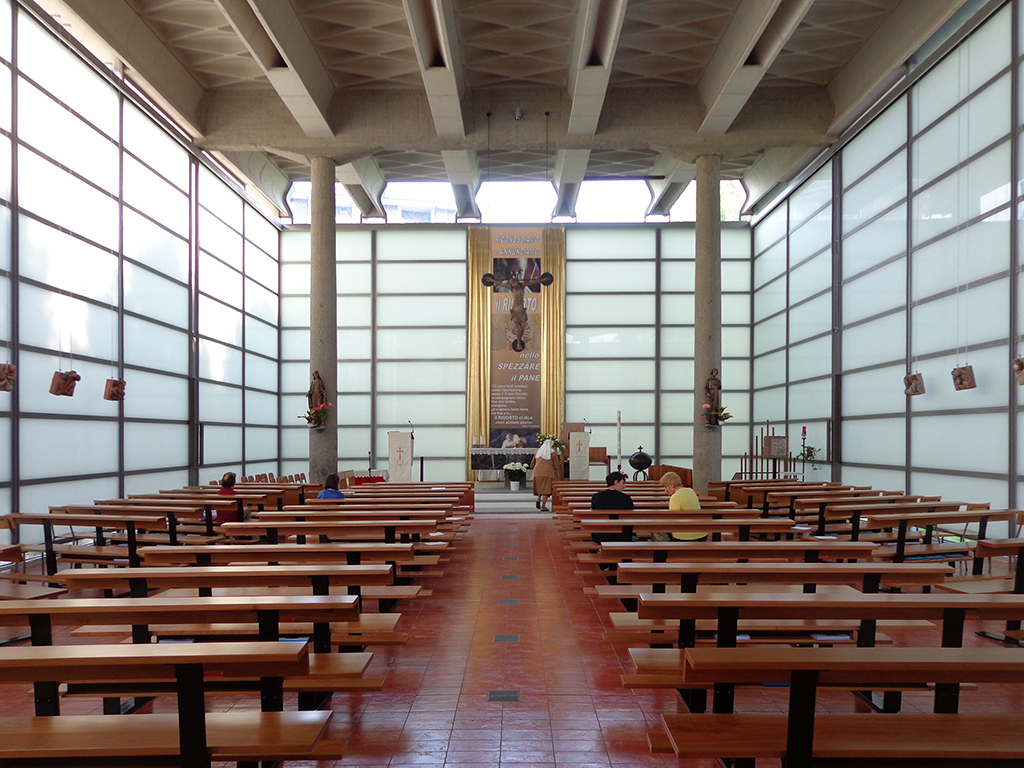 Il viaggio, poi, prosegue verso Monza, dove la Chiesa e il Complesso parrocchiale di San Giuseppe, opera dell’architetto svizzero Justus Dahinden, riflette la volontà degli anni Settanta di pensare il luogo saro come centro comunitario. Ed ecco che gli spazi sono concepiti per accogliere funzioni religiose e sociali insieme, inserendo la chiesa tra i particolari esempi che ben mostrano come il contemporaneo sappia reinterpretare la parrocchia come cuore vivo del quartiere.