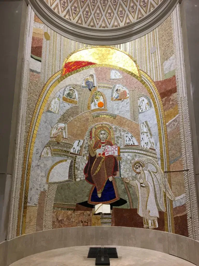 Chiesa e Complesso parrocchiale di San GiuseppeNella parrocchiale di Concorezzo, i mosaici di Rupnik trasformano la luce in preghiera: oro e rosso vibrano sulle pareti come segni di una gloria divina che guida la comunità nell’abbraccio di Cristo.