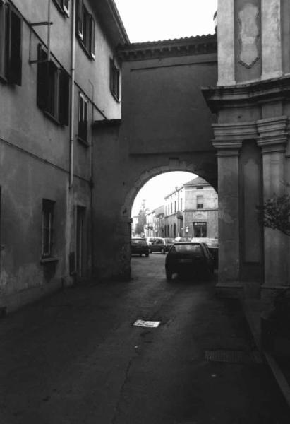 Almeno dal Quattrocento la confraternita dei disciplini di Santa Marta ha sede nell’omonimo Oratorio, con casa attigua in spalla alla porta sud del borgo, rivolta verso l’amica città di Milano e intitolata a colei che accoglie Cristo nel Vangelo. Il sito è tanto esposto che nel 1531 la casa di Santa Marta con portico e corte appare diroccata dalla guerra. La confraternita di Santa Marta ne gestisce il patrimonio, formato perlopiù da lasciti testamentari e raccolto ai piedi della patrona.