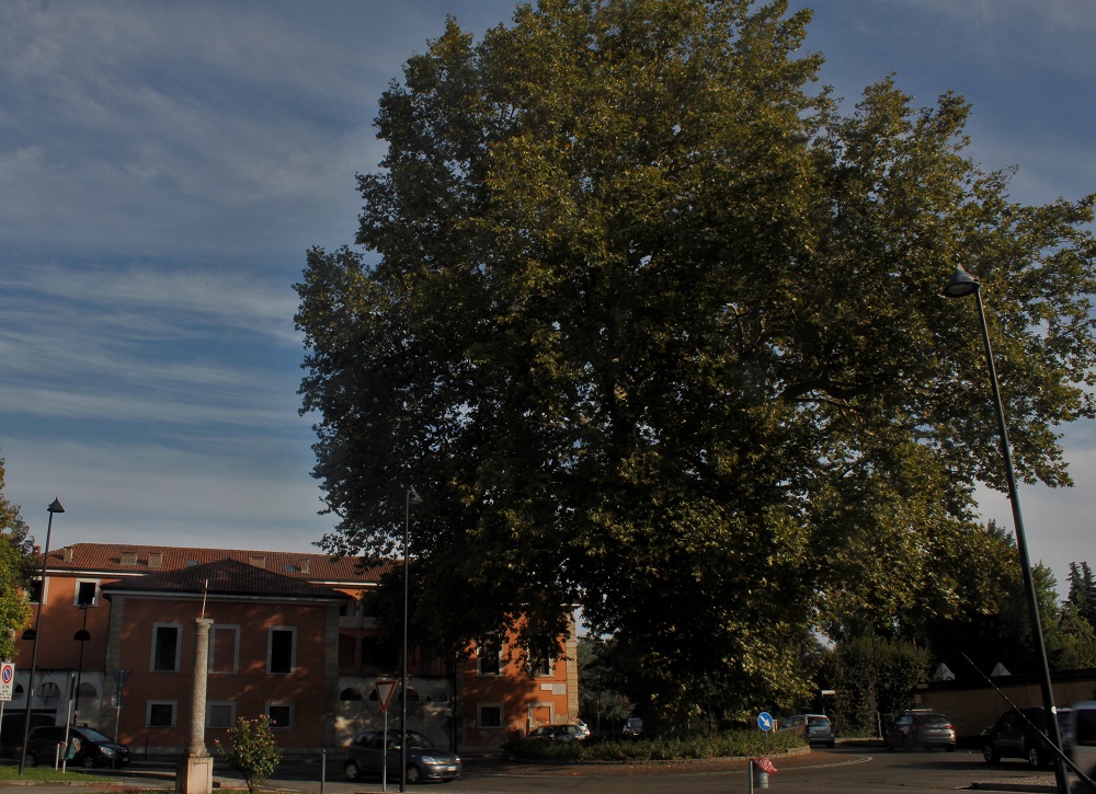 All’incrocio tra via Sant’Ambrogio e via per Paderno, il platano monumentale di Verderio è uno dagli esemplari arborei più integrati nella viabilità di zona, al confine con il territorio ecomuseale. Nel 2004 il crocevia, già regolato da semaforo, è aggiornato all’attuale rotatoria, su cui sorge la pianta, alta ad oggi circa 35 metri. Prima della conversione da incrocio a rotatorio, sotto la chioma del platano monumentale stava la stele in granito (poi lievemente ricollocata) in memoria della battaglia, combattuta proprio a Verderio tra Austriaci e Francesi nel 1799. Una seconda lapide venne posata sul vicino largo della Battaglia per ricordare la deportazione ad Auschwitz dei Milla, famiglia di origini ebraiche. Nel territorio di Ecomuseo, platani simile svettano nel parco attorno alla Villa Castelbarco di Imbersago e sulla piazza di Badalasco, frazione di Fara Gera d’Adda.